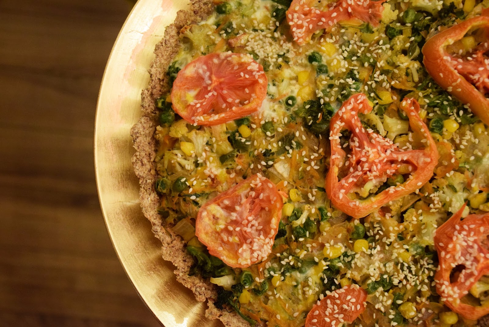 Para el relleno, poner un poco de aceite en un sartén y agregar la cebolla y cuando esté un poco cristalina, ir agregando los demás ingredientes sugeridos o el que quieran o tengan a mano, también pongan la sal y pimienta gusto. Cuando esté listo el relleno ponerlo en el molde sobre la masa de avena. Al final le puse las rodajas de un tomate, batí el huevo con un tenedor y lo vertí encima del relleno y esparcí un poco de sésamo para decorar. Finalmente llevar a horno medio previamente calentado durante unos 30 minutos aproximadamente.